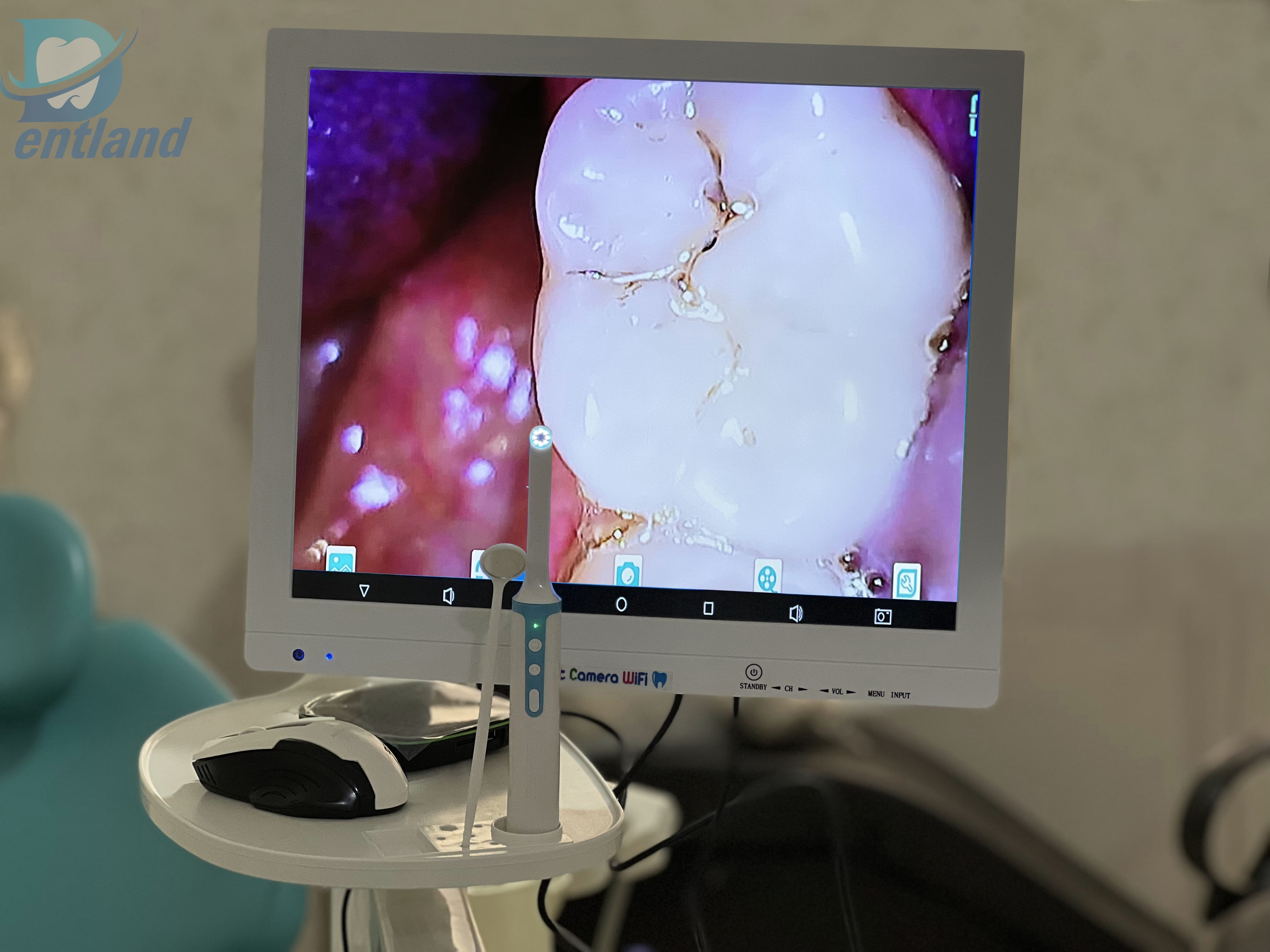 مانیتور و دوربین داخل دهانی برای دید واضح تر پزشک از داخل دهان در حین جراحی به کار میرود دوربین داخل دهانی وسیله ای در ابعاد مسواک است که یک سر آن دوربین قرار دارد و به راحتی داخل دهان را تصویربرداری میکند. این دوربین ها در دو نوع با سیم و بی سیم موجود هستند دوربین های بی سیم امکان خراب شدن بیشتری نسبت به دوربین های باسیم دارند .اما به طور کلی مشکل اصلی خرابی های دوربین ها نرم افزاری ست.دوربین ها به آب و ضربه حساسند و نیاز به کاور کردن حین مواجهه با محیط مرطوب دارند مانیتور دارای وضوح بالا و حساسیت بالا هستند و دارای پورت یواس بی و خروجی ویدیو هستند و امکان دریافت کارت حافظه برای نگهداشتن تصاویر را دارند